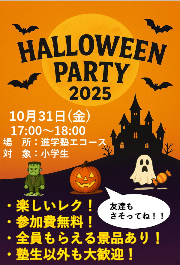 10/31(金)17:00~18:00から進学塾エコースにて行います。